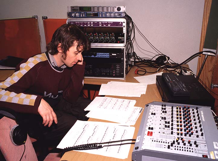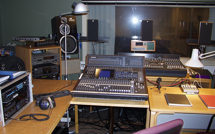 Producers desk at studio 3 at The Swedish Broadcasting Corporation in Stockholm. The soloist Fredrik Burstedt.
