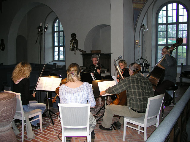 2004 12 06 spelade Uppsala Kammarsolister in David Lampel´s sextett för stråkar. CD-inspelningen gjordes i Giresta kyrka och skivan med verk av den i Paris bosatte tonsättaren planeras att utkomma hösten 2005. Tekniska data: Inspelat i surround-stereo. Huvudmikar: ADK A-51TT/CE rörmikrofon. Övriga mikrofoner: AKD A-51 Hamburg och Schoeps MK2S. |