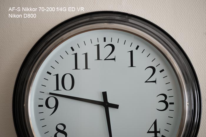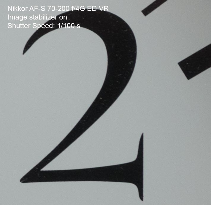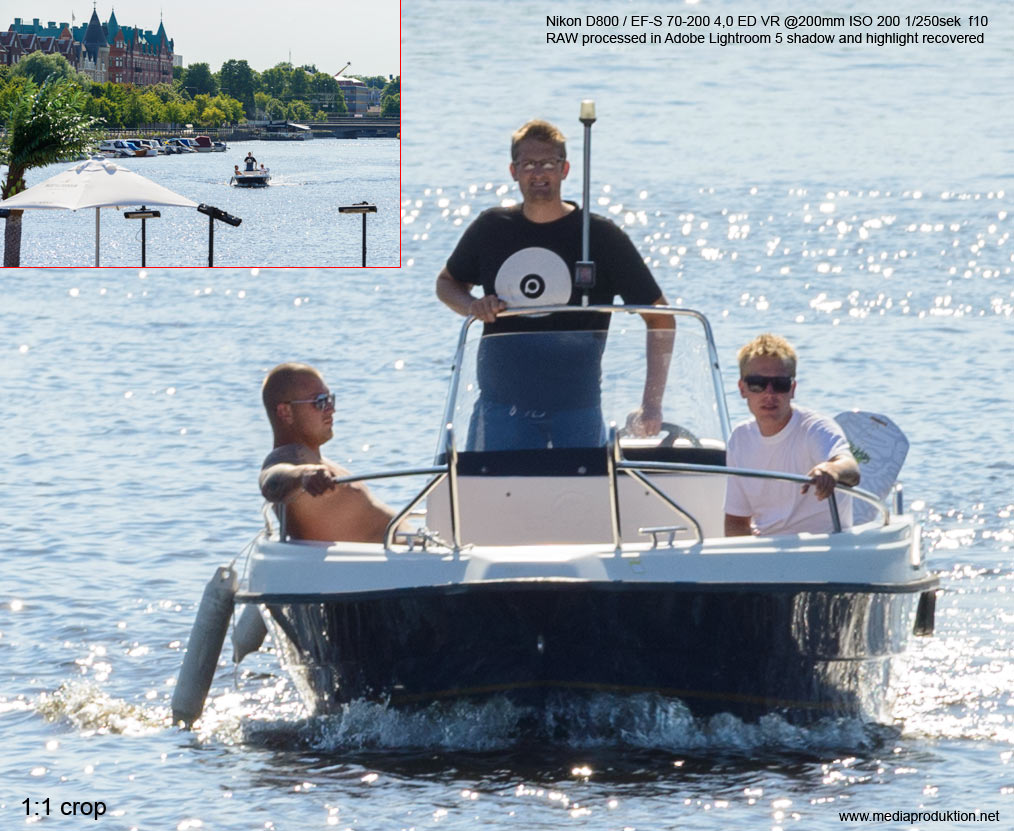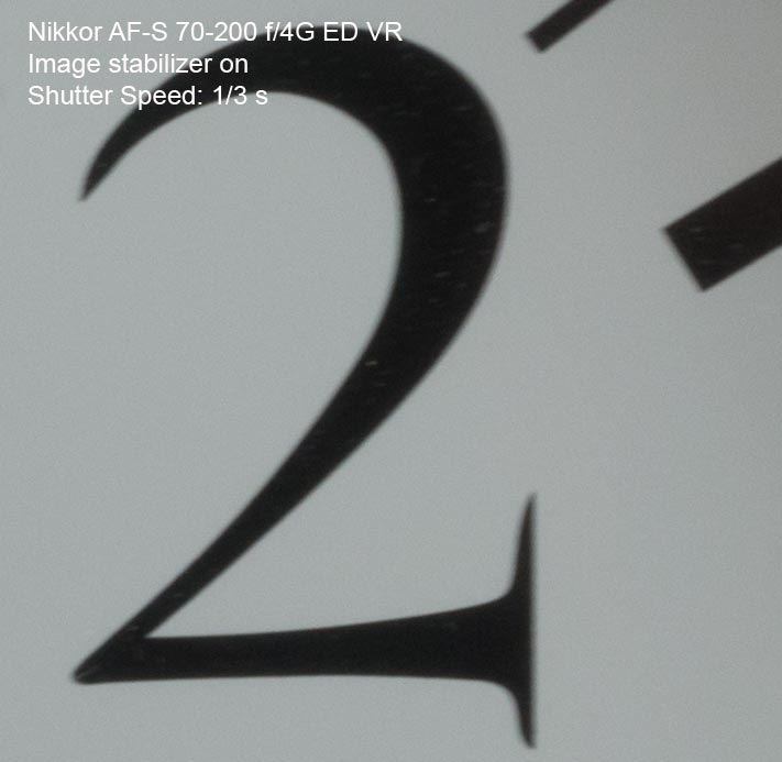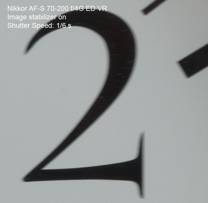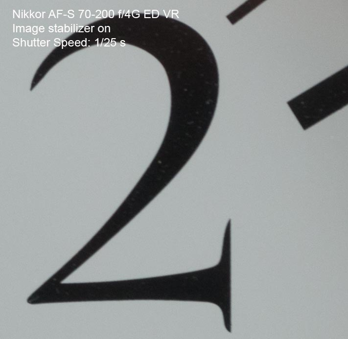 Nikkor 70-200 4,0 ED VR Ett av de bäst passande standardobjektiven för Nikon D800 är detta 70-200mm zoom. Det är lätt och skarptecknande med en av Nikons bästa bild- stabiliseringar vilket är en förutsättning för att få bibehållen skärpa med en kamera som har så hög upplösning med sina 36 megapixlar. De flesta bilderna på denna sida har tagits med detta objektiv. Här ser vi hur effektiv stabilisatorn är på långa slutartider. Om man har tur och är stadig på handen kan man ta godkända bilder ända ner till 1/3 sekund på längsta brännvidden. Det är dock inte att rekommendera att chansa i onödan. 1/50 sekund är generellt bra att stanna vid om man tar bilder på fri hand.