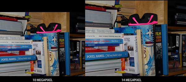 Panasonic FZ28 ISO 1600 För att tydliggöra vår synpunkt på dagens bildsensorkvalitet så visar vi samma motiv taget med DSLR-kameran Canon EOS 350D som landerades runt år 2005. Den har en 8,2 megapixelsensor men sensorns yta är större vilket gör att varje pixel får in mer ljus. Här har vi full detaljteckning på ISO1600. Optiken vi använder ansågs som orimligt dålig kvalitet för att vara en paket-zoomoptik från en seriös kameratillverkare som Canon. Inte desto mindre ser det ju strålande ut i denna jämförelse.... Kamerorna har exponerat olika. Därför kan Canon-bilden se aningen bättre ut i lågdagrarna. Tag detta i beaktande vid bedömningen.