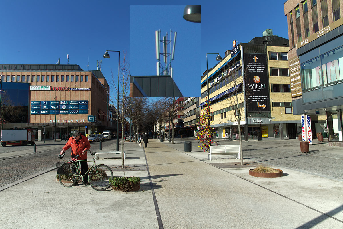 Om du tittar på bilderna i större format ser du mobiltelefonmasten i 1:1 pixelutsnitt. Originalbilden har en rätt kraftig kromatisk aberration som