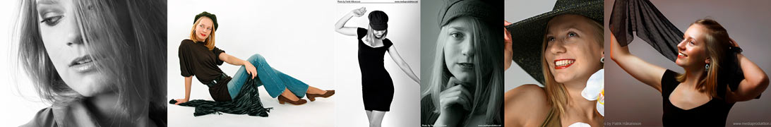 Meriter Modell och Dansare. Cirkusutbildning. En sprallig och glad tjej som gillar utmaningar och nya äventyr. Jag är aktiv på fritiden som tävlings- dansare och cirkusartist. Jag tränar upp till 9 h i veckan i Gävle och Stockholm. Förutom det har jag testat på det mesta så som ridning och klättring, och jag provar gärna på nya saker. Jag har jobbat med Patrik Håkansson sedan 2008 och jag är intresserad av att fota det mesta, men jag gillar speciellt lite mer galna och "over-the-top"-bilder, men jag gillar det mesta som sagt. |