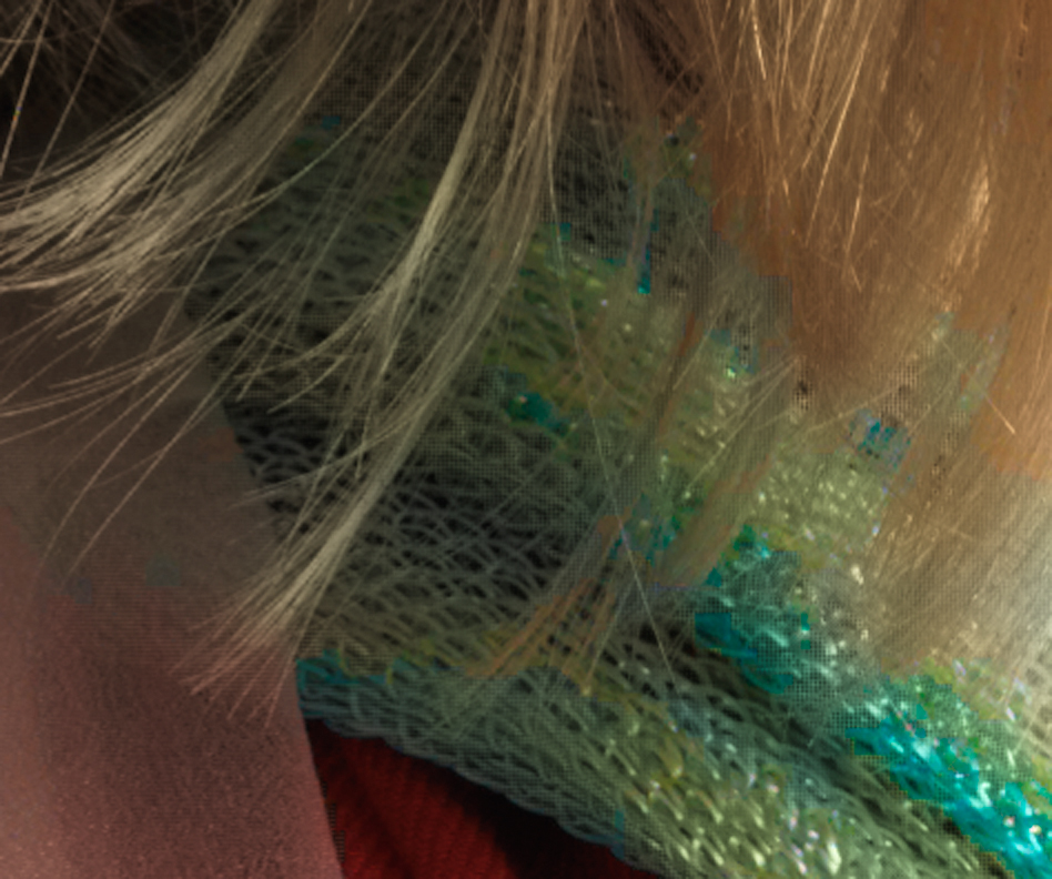 Klicka på bilden för att öppna den i originalformat 5478x7304 pixlar. (3.5 MB) Se bilden bilden i medelstorlek 1950x2600 pixlar här Detaljstudie i 4x förstoring. Här ses sporadiskt förekommande artefakter som uppstår som en följd av användning av Moiree-elimineringsfiltret i Raw-konverteraren Phocus. Här har Moiree-detektionen misstagit sig och justerat felaktigt. På nästa bild är Morieefiltret inaktiverat: