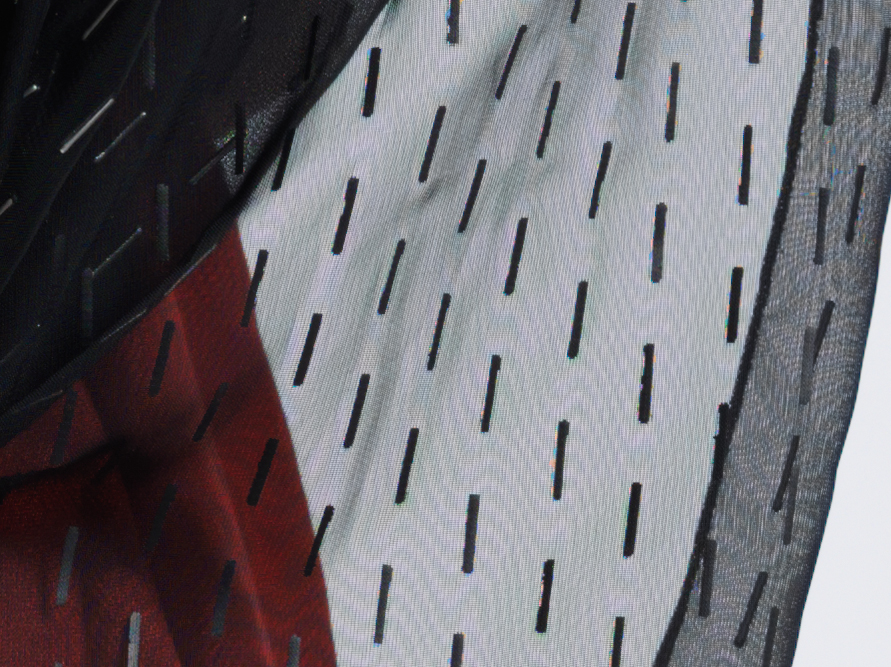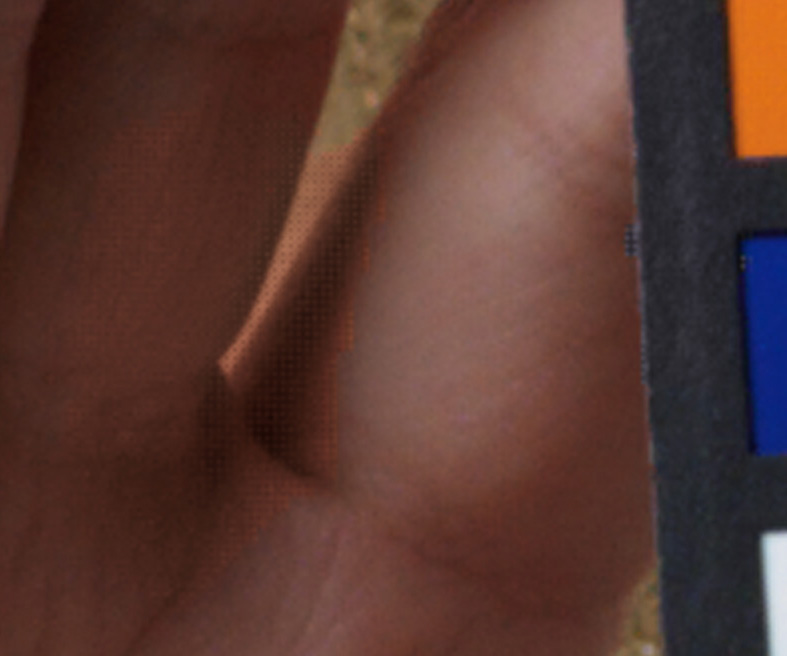 Nedanstående exempel visar destruktiva konsekvenser av Moireefiltret inställt på högsta möjliga moireereduktion. Detalj 2 (200% förstoring)
