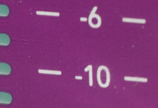 Först om vi skulle ge oss in på att förstora bilden ytterligare kan vi vinna viss renhet i linjerna i bilden som är tagen med extender. Och vi hjälper till med en oskarp mask för att visa hur det går att öka klarheten i bilden. Men de vita dammkornen i bilden tagen med extender återges trots uppskärpningen väldigt diffust. Utan extender