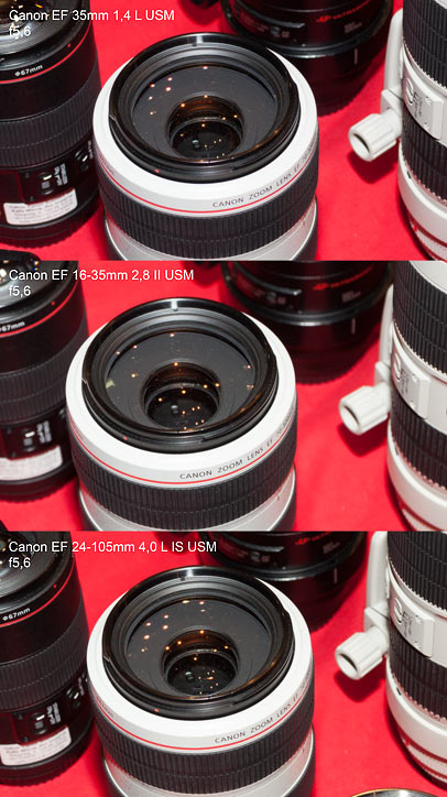En improviserad testomgång av Canons tre populäraste gluggar alla inställda på 35mm brännvidd kom upp som