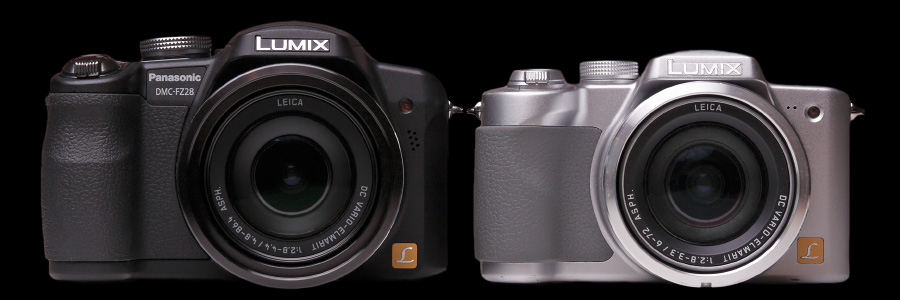 Panasonic DMC FZ28 bygger vidare på designen från FZ5 och övriga föregångare i LUMIX-serien och till stor del placerar man reglage och knappar på liknande sätt som för 4 år sedan. Först och främst är FZ28 något större och reglagen sitter mer logiskt placerade. Högerhandsgreppet är djupare vilket bidrar till ännu bättre komfort och stabilitet. Fortfarande med- följer ett mycket bra motljusskydd som visar att man vill ge fotografen full nytta av det väldesignade zoomobjektivet. Optiken är alltjämt mycket kompakt med tanke på omfånget och diskret är ett ofta återkommande omdöme. Den inbygda blixten har blivit större och sitter också högre upp vliket minskar risken för att kamerans objektiv ska skugga i vidvinkelläget.